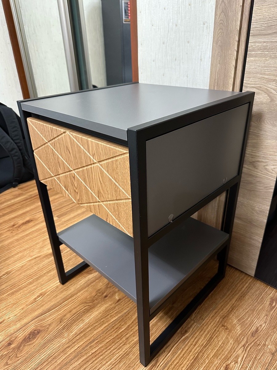 Давно искал тумбу похожего дизайна в нужной мне цветовой гамме и размерах, и в интернете ничего адекватного было не найти. Снова на помощь пришла BestMebel, выполнив мои пожелания и приняла дополнение заказа по телефону.У конструкции тумбочки есть и минус. С прикрученной как ее тут назвали "Задняя панель1" невозможно вытащить/засунуть ящик, так как задняя часть ящика не может зайти на направляющие под углом, мешают полсантиметра высоты этой детали. Для этого пришлось уже после сборки разбирать перед ящика, откручивать крышку, засовывать ящик, прикручивать обратно крышку и уже потом снова собирать перед ящика.