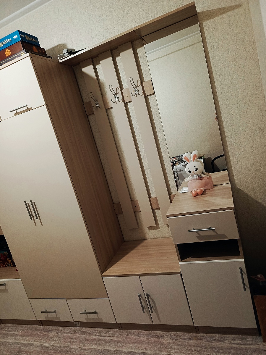 Отличная прихожая, заказывала в конце апреля (Заказ № 00000117985), до сих пор не нарадуюсь! Качество отличное, прихожая функциональная, много шкафчиков, ящиков, полок, уместила все свои многочисленные вещи в одном шкафу. Внешний материал очень приятный на ощупь, как будто бархатный. Цвета выбрала светлые, очень освежает прихожую.