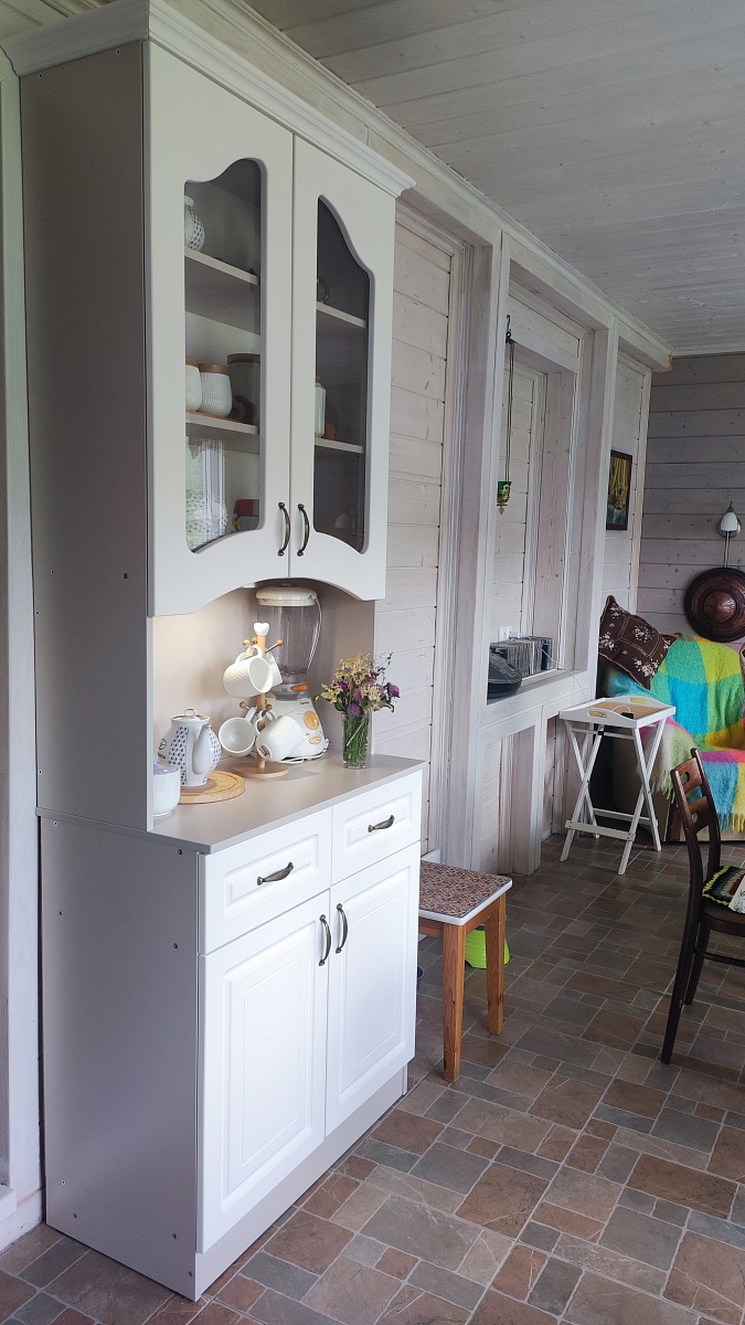 Купили буфет. Изменила стандартные цвета и петли. Стал сильно дороже. Добавила светильник (на магните из ЛеманаПро). Вписался буфет идеально. Устойчивый, не заваливается, крепко держится, не шаткий. Направляющие в ящики лучше простые ставить, а если с доводчиками хотите, то берите самые лучшие. Доводчики среднего качества не работают. Буду менять.Собирали пол-дня о онлайн схеме - очень удобно.Видимые на боковинах болты предлагают заклеить специальными наклейками, но я их лучше покрашу в цвет корпуса.В остальном, претензий нет!По дизайну вписался идеально.Доставили быстро в полной комплектации.