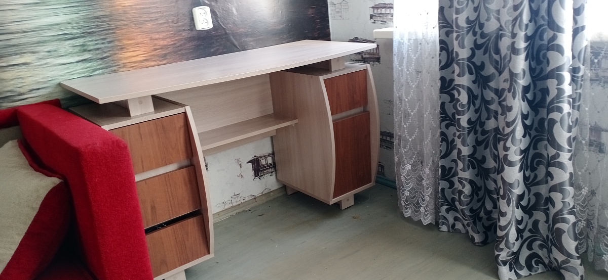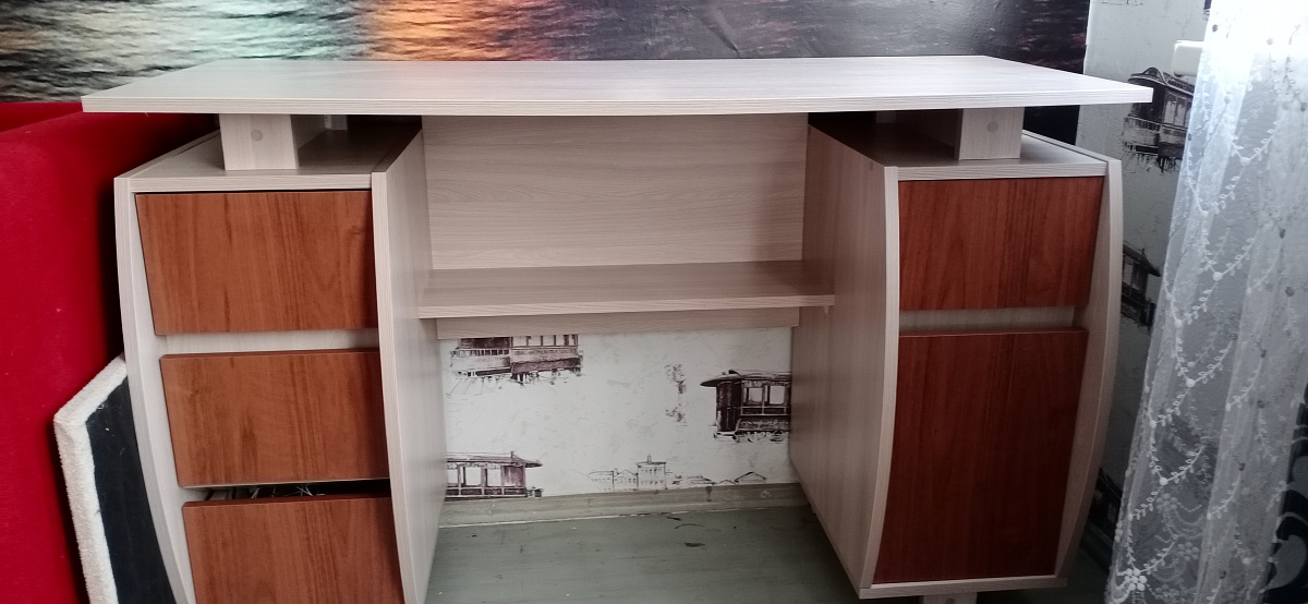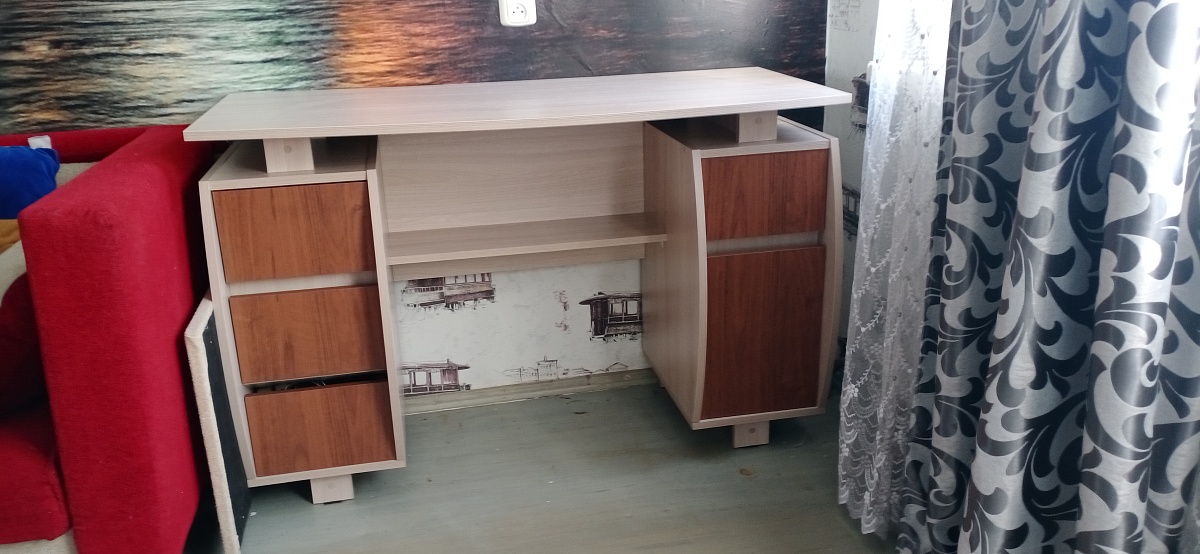 Приобрели письменный стол на двоих детей.  Очень достойная модель,  металлический стильный каркас. Был дефыект на фасаде ящика, быстро все заменили